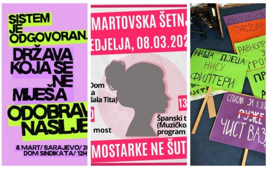 Za 8. mart, Međunarodni dan žena, najavljeni su protestni marševi u Sarajevu, Mostaru i Banjaluci.