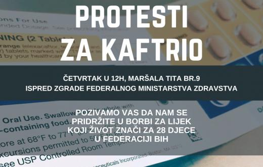 Kako navode iz Udruženja, roditelji djece sa cističnom fibrozom na protest izlaze sa jednim zahtjevom: “Tražimo od predstavnika Federalnog ministarstva zdravstva i Vlade Federacije BiH da se za 28 djece sa dijagnozom cistična fibroza po hitnom postupku omogući nabavka lijeka Kaftrio kako bi se spasili njihovi životi”.