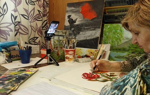 Šarić, lokalno poznata umjetnica i aktivistica koja pomaže ženama, starijim osobama i osobama s invaliditetom da očuvaju mentalno zdravlje kroz umjetnost, počela je u aprilu davati online časove slikanja putem prenosa uživo na Facebooku. Njen prvi video čas uživo o tehnici slikanja enkaustika (tehnika slikanja peglom i voskom) pregledan je na Facebooku više od 1.000 puta. Nakon tog časa, neki njeni Facebook prijatelji počeli su je kontaktirati pitajući je za dodatne savjete i trikove kako da koriste peglu kao sredstvo za slikanje, zbog čega je nastavila održavati sedmične live streamove sve do kraja maja. Neke od njenih virtuelnih “učenica” Šarić su slale fotografije slika koje su naslikale peglom tokom karantina, a koje su bile inspirisane njenim časovima na Facebooku.