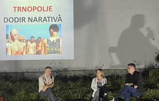 “Noć u Trnopolju“ zaključena je panel diskusijom na kojoj su govorili istraživači Mersiha Jaskić i Jasmin Medić. Osnovo pitanje bilo je memorijalizacija i sjećanje na žrtve. Od preko 40 spomen-obilježja za žrtve Prijedora, svi se nalaze u povratničkim zajednicama ili u kompleksima džamija i drugim prostorima u vlasništvu Islamske zajednice u Bosni i Hercegovini (BiH). U gradu Prijedoru, niti jednog.