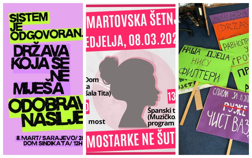 Za 8. mart, Međunarodni dan žena, najavljeni su protestni marševi u Sarajevu, Mostaru i Banjaluci.