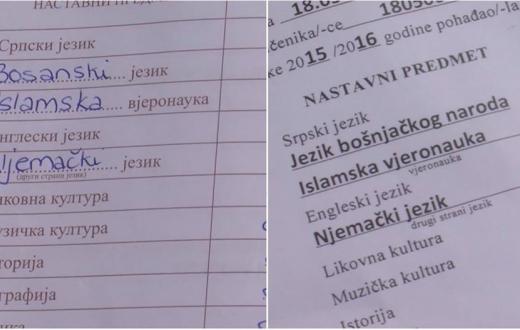 U Janji je, kako su 2016. pisale novine, nacionalna grupa predmeta uvedena 2003. i tada se upisivao bosanski jezik u đačke knjižice. Takva praksa je trajala do 2016. kada je, po nalogu Vlade RS, direktorica škole u Janji promijenila upute i naložila da se “u prazne rubrike za jezik djeci bošnjačke nacionalnosti upiše jezik bošnjačkog naroda”. Na te naloge ministra jedino se oglušio direktor škole u Kozarcu, koji je djeci upisao bosanski jezik u knjižice.