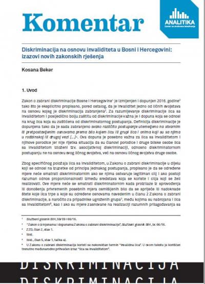 Diskriminacija na osnovu invaliditeta u BiH: izazovi novih zakonskih rešenja