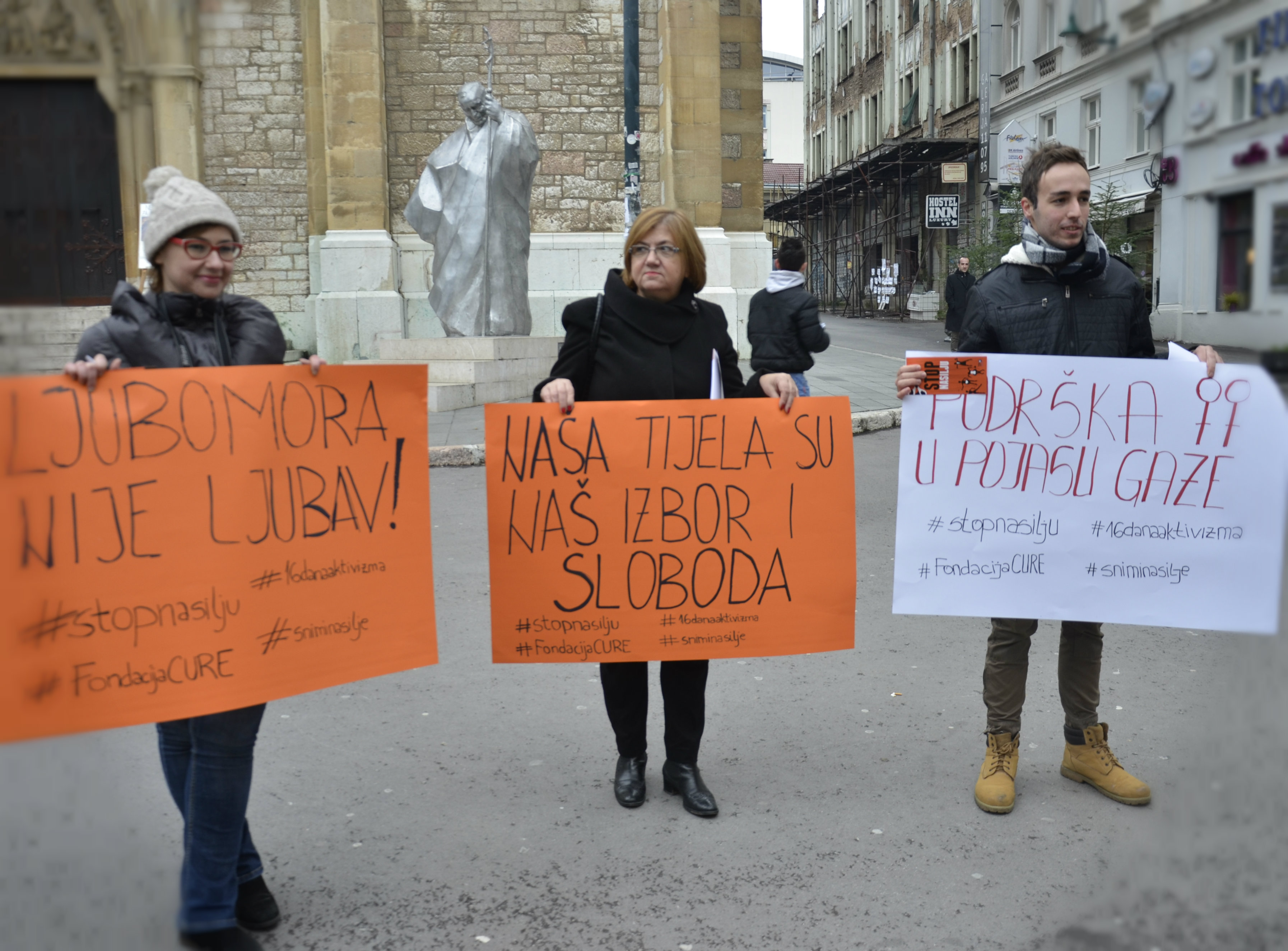 "Mislim da nema dovoljno akcija da je i ovo što ovdje imamo danas zaista sporadično. Jer i mi kao i društvo u cjelini izlazimo na cestu samo onda kada su ti neki veliki međunarodni dani poput Dana ljudskih prava. Smatram da bismo svaki dan trebali da budemo na cesti, i to ne samo u Sarajevu, nego u svim dijelovima BiH, u manjim mjestima, seoskim zajednicama, manjim i većim gradovima, " istakla je Selma Hadžihalilović iz Fondacije Cure, uz objašnjenje da nisu ženske organizacije jedine koje trebaju izlaziti na ulicu, nego da to trebaju biti svi oni koji prepoznaju nasilje i diskriminaciju u društvu. "Diskriminacija se ne dešava samo ženama, konstitutivnim ženama. Šta je sa onim ženama koje doživljavaju dvostruku diskriminaciju, gdje su oni koji govore da rade u njihovo ime? Gdje je tu i naša podrška takvim ženama? Mislim da zaista trebamo svaki dan izlaziti sve do onog momenta kada budemo mogli reći, nema diskriminacije, zakon se u potpunosti provodi," zaključila je Hadžihalilovićeva.