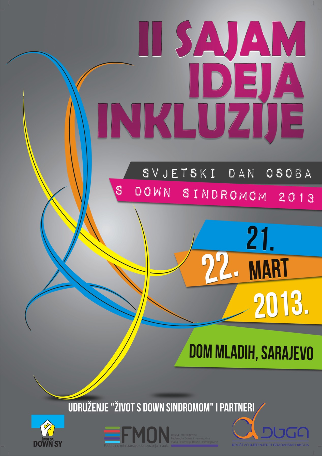 Sutra, 21. marta u Sarajevu počinje obilježavanje Svjetskog dana osoba sa Down sindromom, otvaranjem II Sajma ideja inkluzija koji će prikazati najbolje prakse i ideje škola u u BiH u inkluzivnom obrazovanju. Sajam će biti otvoren u Domu mladih Skenderija, od 9-16 h.
