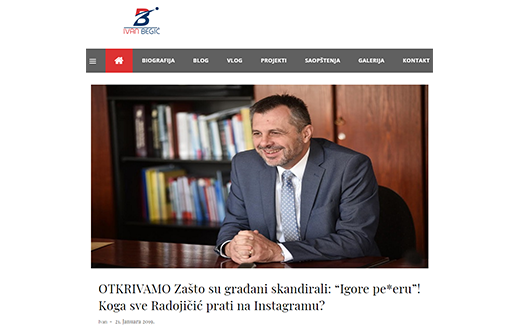 Posljednji primjer jednog od najgrubljih kršenja prava drugog i drugačijeg desio se na blogu Ivana Begića. Bloger, u obračunu sa neistomišljenicima, ovaj put prvim čovjekom Banjaluke, postavlja pitanje ima li povoda uzvicima građana – 'Igore, pederu!'