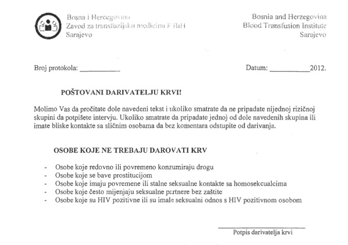 Podsjetimo, Zavod za transfuzijsku medicinu FBiH jučer je organizovao dobrovoljno davanje krvi na Filozofskom fakultetu u Sarajevu. Studenti su bili dužni popuniti formular na kojem izričito piše da osobe koje ne trebaju darovati krv, su –između ostalih – i one koje ,,imaju povremene ili stalne seksualne kontakte sa homoseksualcima“. Studenti su reagovali na kršenje osnovnih ljudskih prava tom odredbom, što je, prema njima, izazvalo da jedan od uposlenika Zavoda fizički nasrne na Amara Numanovića, dok su studentice Lamija i njena koleginica Nedžmana Šeta verbalno napadnute od strane  uposlenice fakulteta.