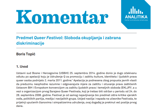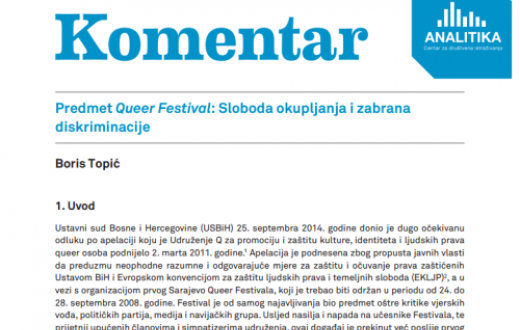 Komentar je objavljen u okviru projekta “Jednakost za sve: Koalicija organizacija civilnog društva protiv diskriminacije”, koji u partnerstvu implementiraju Mediacentar Sarajevo, Analitika – Centar za društvena istraživanja, Prava za sve i Vaša prava BiH. Projekat finansiraju USAID i Fond otvoreno društvo BiH.