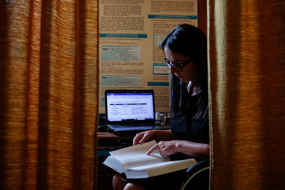 Pedesetpetogodišnja Zrinka Šimunić iz Sarajeva vrijedno prevodi sa francuskog jezika u radnom kutku koji je preuredila u svom stanu u centru Sarajeva. Nakon što 15 godina nije imala stalno zaposlenje, znanje francuskog jezika i višegodišnje iskustvo u prevođenju iskoristila je da pokrene obrt za prevođenje i lingvističke usluge.