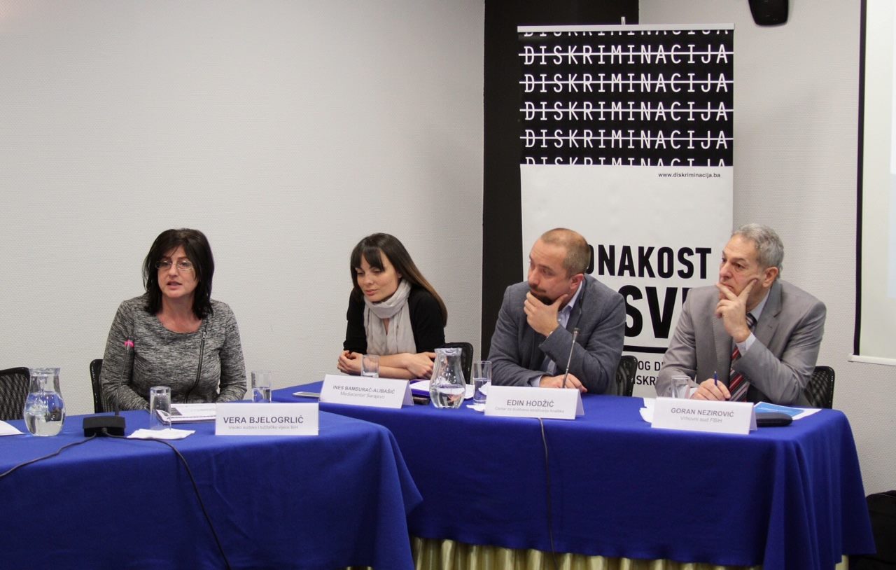 Na okruglom stolu "Specifičnosti i izazovi dokazivanja diskriminacije u parničnom postupku", koji je održan u petak 24.04. 2015. godine, pored mnogobrojnih pravosudnih radnika, sudija i sutkinja, članova nevladinih organizacija, predstavnika Visokog sudskog i tužilačkog vijeća, učestvovali su i prof.dr. Zlatan Meškić sa Pravnog fakulteta u Zenici koji je govorio o konceptu i specifičnostima dokazivanja diskriminacije z poarničnom postupku, Andan Kadribašić ispred OSCE-a koji se osvrnuo na sudsku praksu u BiH i regionu, kao i Goran Nezirović iz Vrhovnog suda FBiH i Staka Gojković iz Vrhovnog suda RS-a koji su iz perspektive sudija govorili o dokazivanju diskriminacije u BiH.