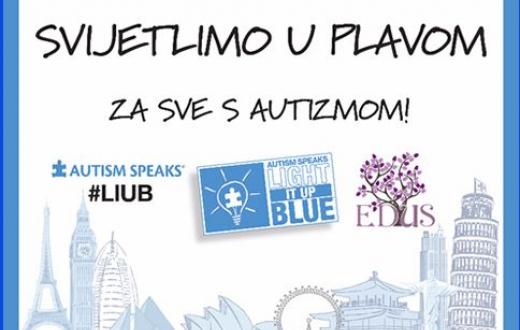 Udruženje za za unapređenje obrazovanja i podrške djeci sa i bez poteškoća u razvoju EDUS, povodom 2. aprila, Svjetskog dana osoba sa autizmom, sprovodi akciju "Svjetlimo u plavom za sve sa autizmom".