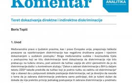 Centar za društvena istraživanja Analitika, u okviru programa ''Jednakost za sve'' predstavlja novi komentar koji se odnosi na prakse tereta dolazivanja direktne i indirektne diskriminacije.
