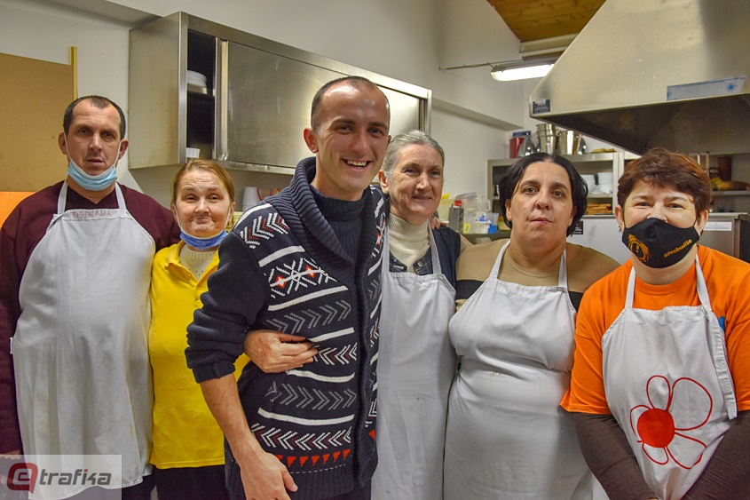 Svi su raspoloženi da pričaju sa nama. Ne smetaju im kamere ni mikrofoni. U restoranu rade i tri osobe bez invaliditeta. To su glavni kuhari. Objašnjavaju nam kako dan započinje pranjem ruku, oblačenjem uniforme i čišćenjem kuhinje. Zatim slijedi pripremanje doručka za štićenike Centra.