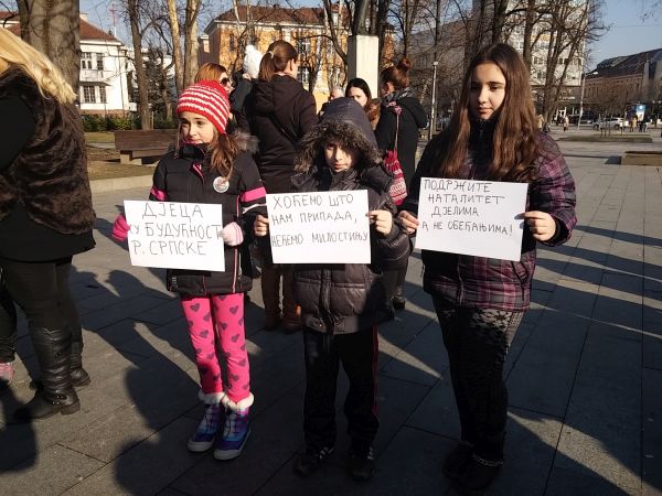 ''Majke zahtijevaju najmanje 100 KM doplatka za svako dijete te ukidanje cenzusa za dječiji doplatak'', kaže majka četvoro djece Vedrana Čamdžić. “Nismo tu da pravimo pobunu, nego da tražimo prava naše djece. Prvi zahtjev je da isplate iz Fonda za treće i četvrto dijete budu redovne. Ostali zahtjevi su da se ukine cenzus i poveća dječiji doplatak, da na dodatak imaju jednaka prava sva djeca u RS bez obzira na radni status oba roditelja. Da se ukine PDV i smanje cijene na osnovne potrepštine za bebe, kao što su pelene, mlijeko i adaptirana hrana. Tražimo i da osnovni lijekovi za djecu i trudnice budu besplatni. Nisu samo ospen i amoksicilin osnovni lijekovi. Daćemo nadležnima rok od 90 dana da ispune naše zahtjeve, a onda ćemo opet izaći na ulicu, ukoliko ne dobijemo odgovor”, istakla je Čamdžićeva.