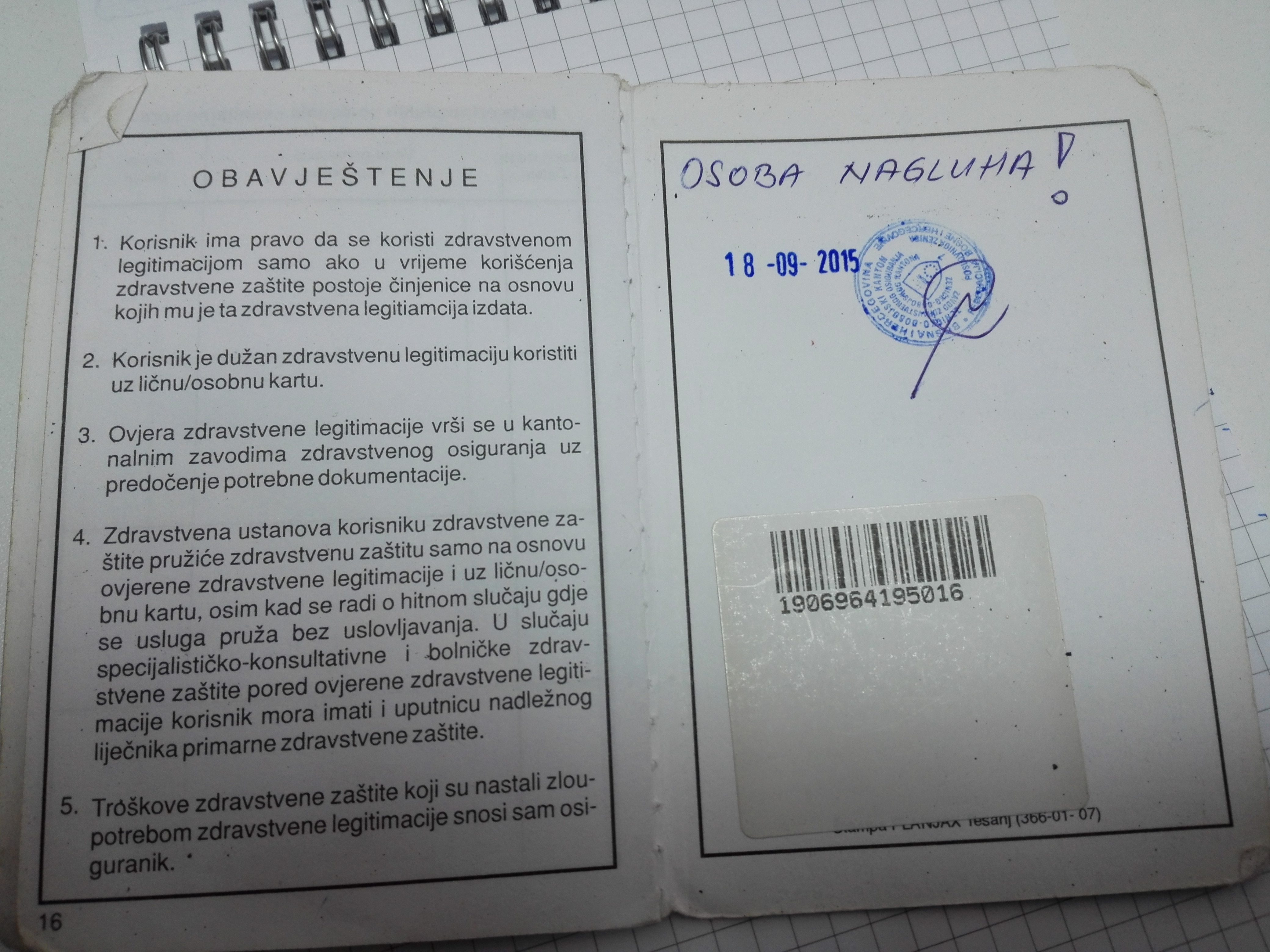 Rješenje je vrlo prosto. Na zadnjoj stranici zdravstvene knjižice, jasno je naznačeno da je u pitanju gluha osoba.