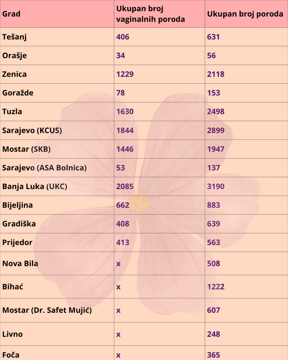 Institucije u BiH nadležne za oblast zdravstva kojima smo poslali upite ne prikupljaju ovakvu vrstu statističkih podataka, a gotovo polovina porodilišta koje smo kontaktirali nije proslijedila nikakve informacije.