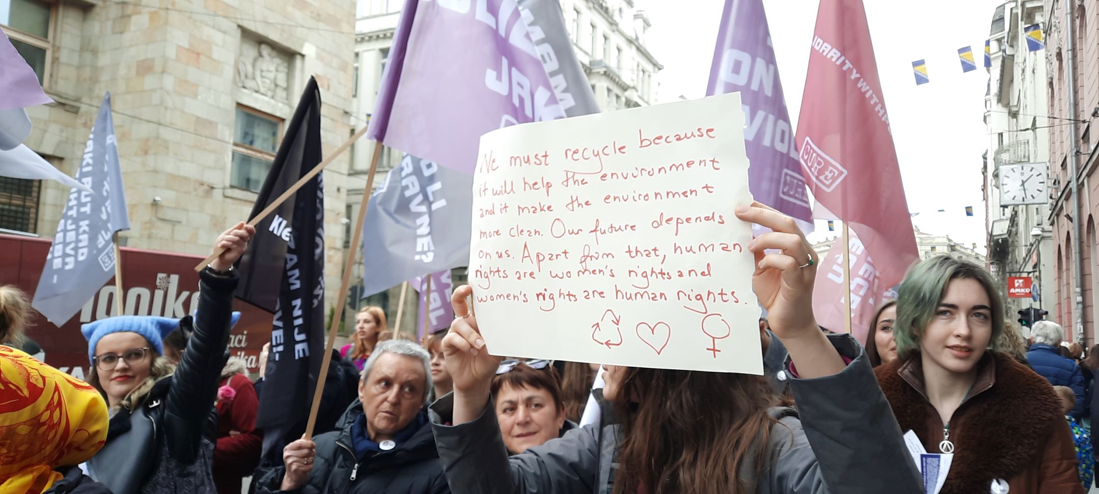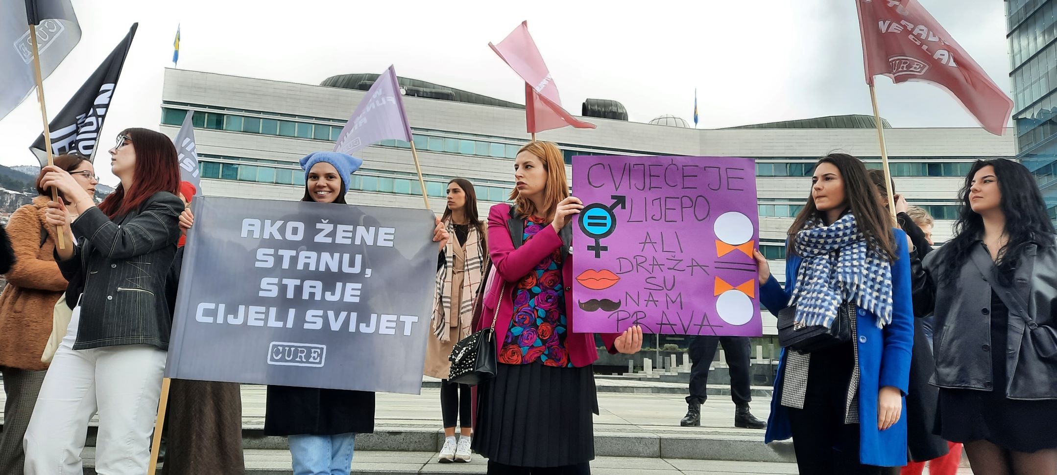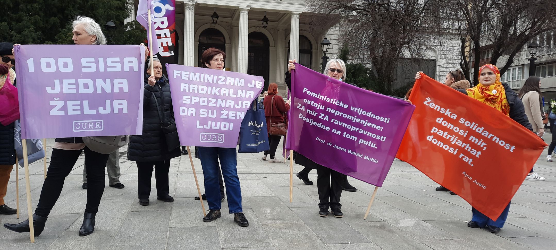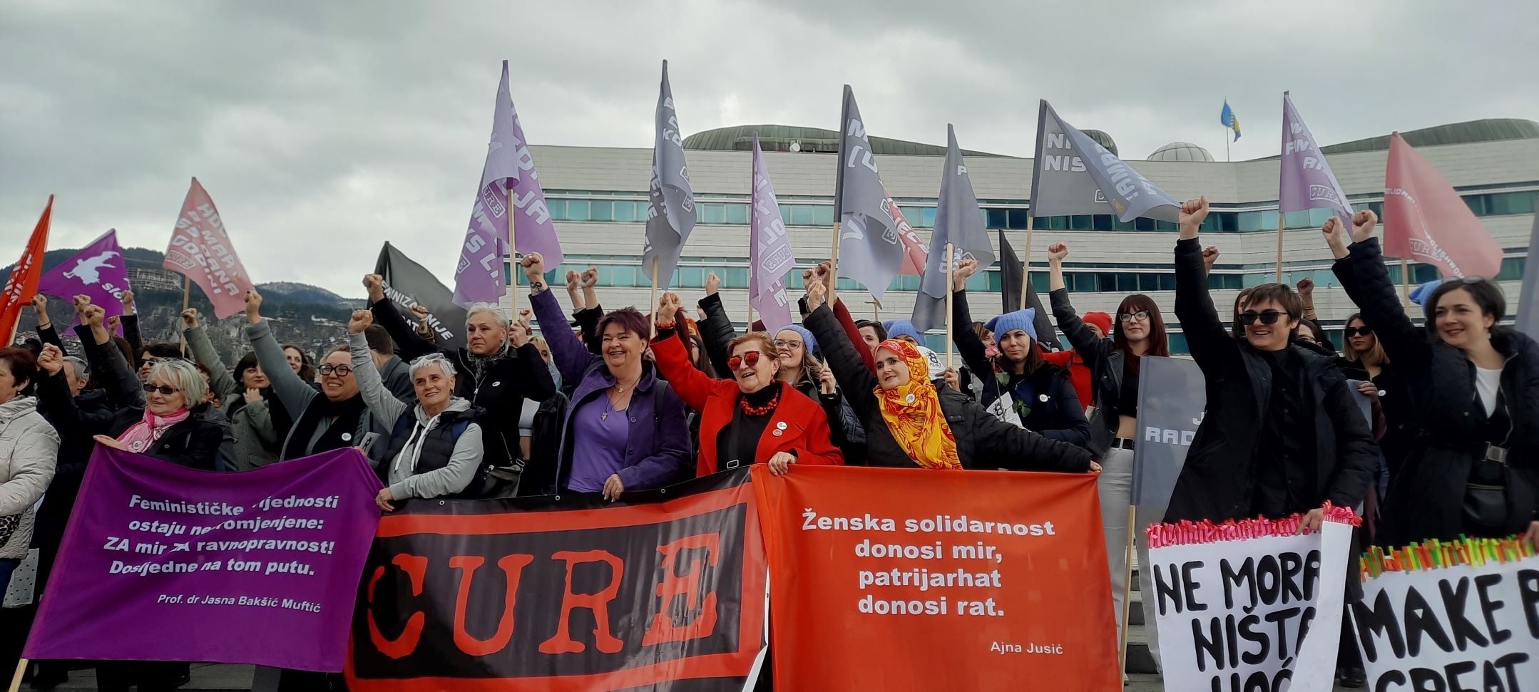 “Dostojanstven rad, a ne glad”, “Feminizam je radikalna spoznaja da su žene ljudi”, “Ženska solidarnost donosi mir, patrijarhat donosi rat”, neke su od poruka koje su se našle na transparentima ovogodišnjeg osmomartovskog marša u Sarajevu kojeg je organizovala Fondacija CURE.