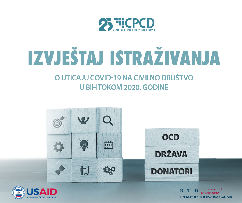 Izvještaj je kreiran u okviru projekta Centra za promociju civilnog društva pod nazivom “Uticaj COVID-19 na civilno društvo” uz finansijsku podršku The Balkan Trust for Democracy i USAID-a.