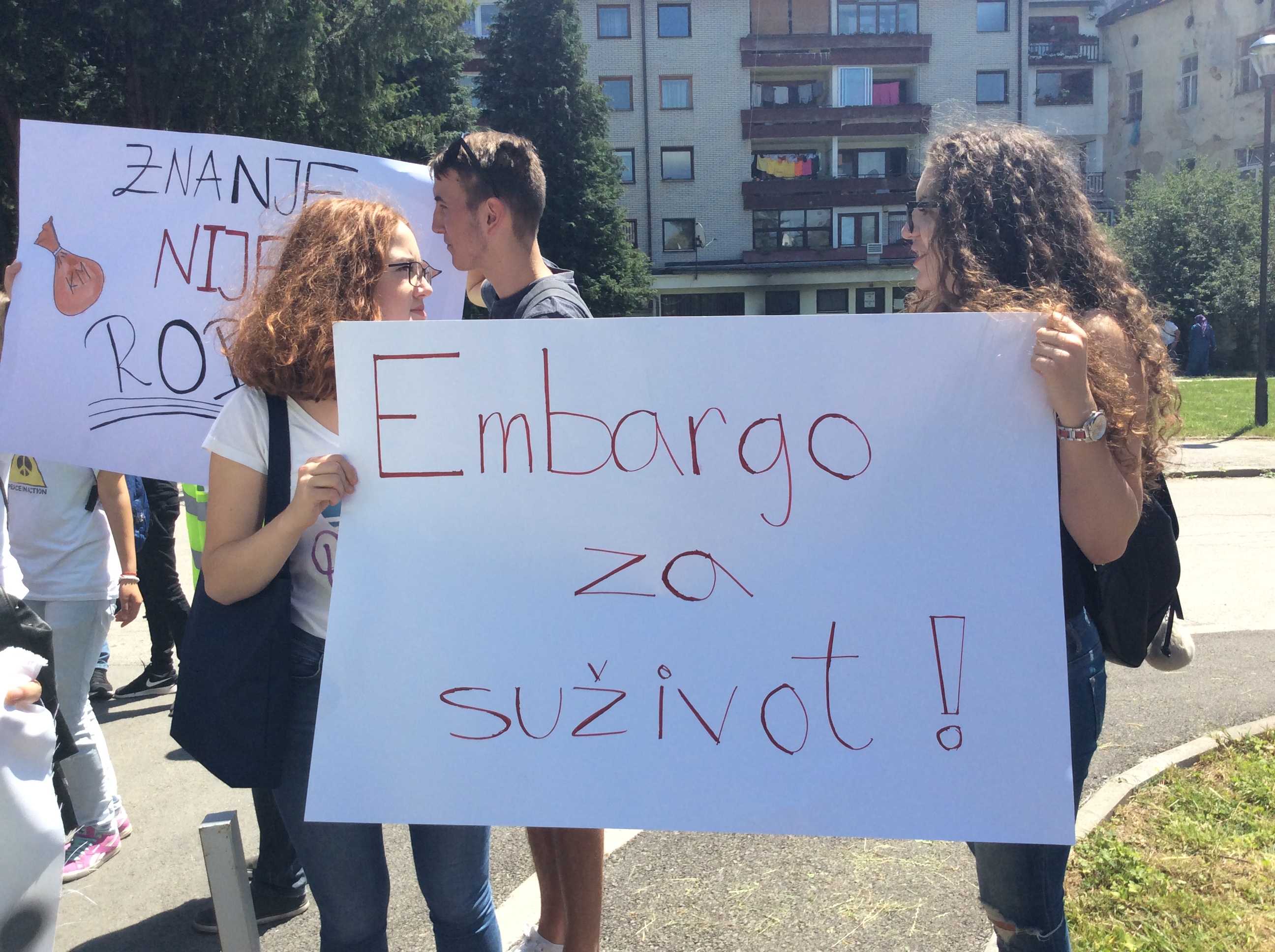 Noseći transparente “Embargo za suživot”, “Znanje nije roba”, “Šta će vama vaša dica rić?” ispred Vlade kantona srednjoškolci su stajali dok ih ministrica Katica Čerkez nije pozvala na razgovor, ali i poslije, dok su čekali da se predstavnici Inicijative “Naša škola” vrate sa sastanka. Ministrici Čerkez poručili su: „Segregacija je loša investicija“ i „Ovdje smo da stvaramo budućnost, a ne da ponavljamo prošlost“.