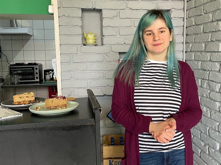 „U početku je ideja bila da to bude jednostavno: kafić sa smutijima, sokovima, i jednostavnim jelima. Poslije se jelovnik proširio, i ono na što smo ostali fokusirani su veganski kolači gdje ja mogu da ispoljim svoju kreativnost“, kaže ova mlada preduzetnica koja proteklih nekoliko mjeseci učestvuje u programu BizUp koji provode Fondacija 787 i UN Women u BiH, uz finansijsku podršku vlade Ujedinjenog Kraljevstva.