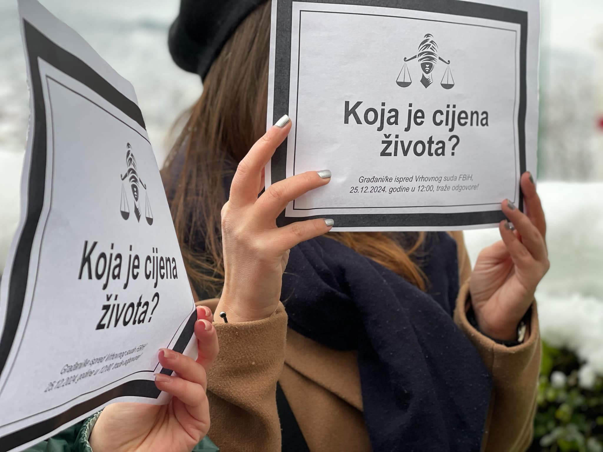 Hadžihalilović je istakla da pravde za izgubljeni život u BiH nema te da današnji protest nije samo zbog jedne odluke Vrhovnog suda Federacije BiH već zbog propusta u cijelom pravosudnom lancu, od prvog prijavljivanja nasilja do presude.