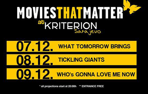 U sarajevskom kinu Kriterion, publika će od 7. do 9. decembra moći pogledati nekoliko interesantnih međunarodnih filmskih ostvarenja u sklopu programa Movies that Matter.