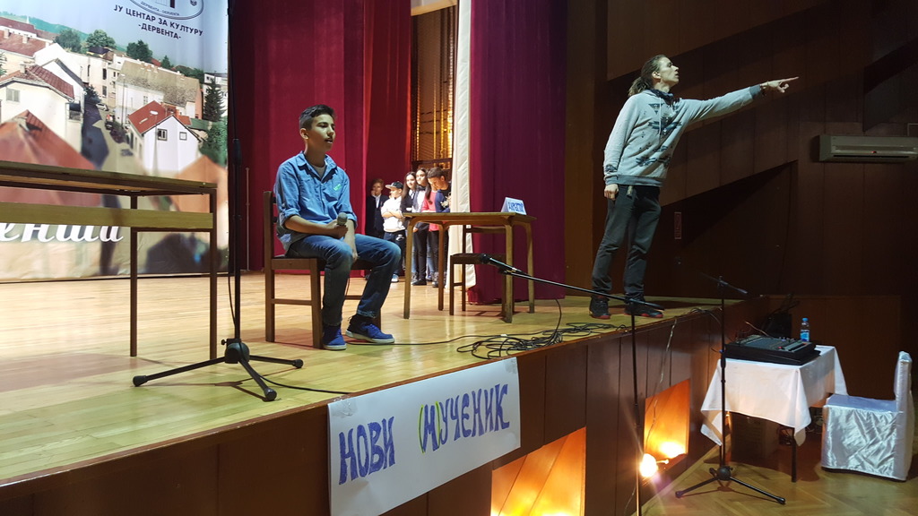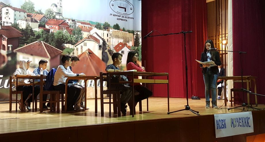 U predstavi pod nazivom "Novi (m)učenik", deset učenica i učenika šestog i sedmog razreda OŠ "19. april" progovorilo je o problemu diskriminacije na osnovu nacionalne pripadnosti. Predstava govori o dječaju Ibrahimu, novom učeniku u derventskoj školi, koji odmah po dolasku u razred biva izložen nasilju i ismijavanju.