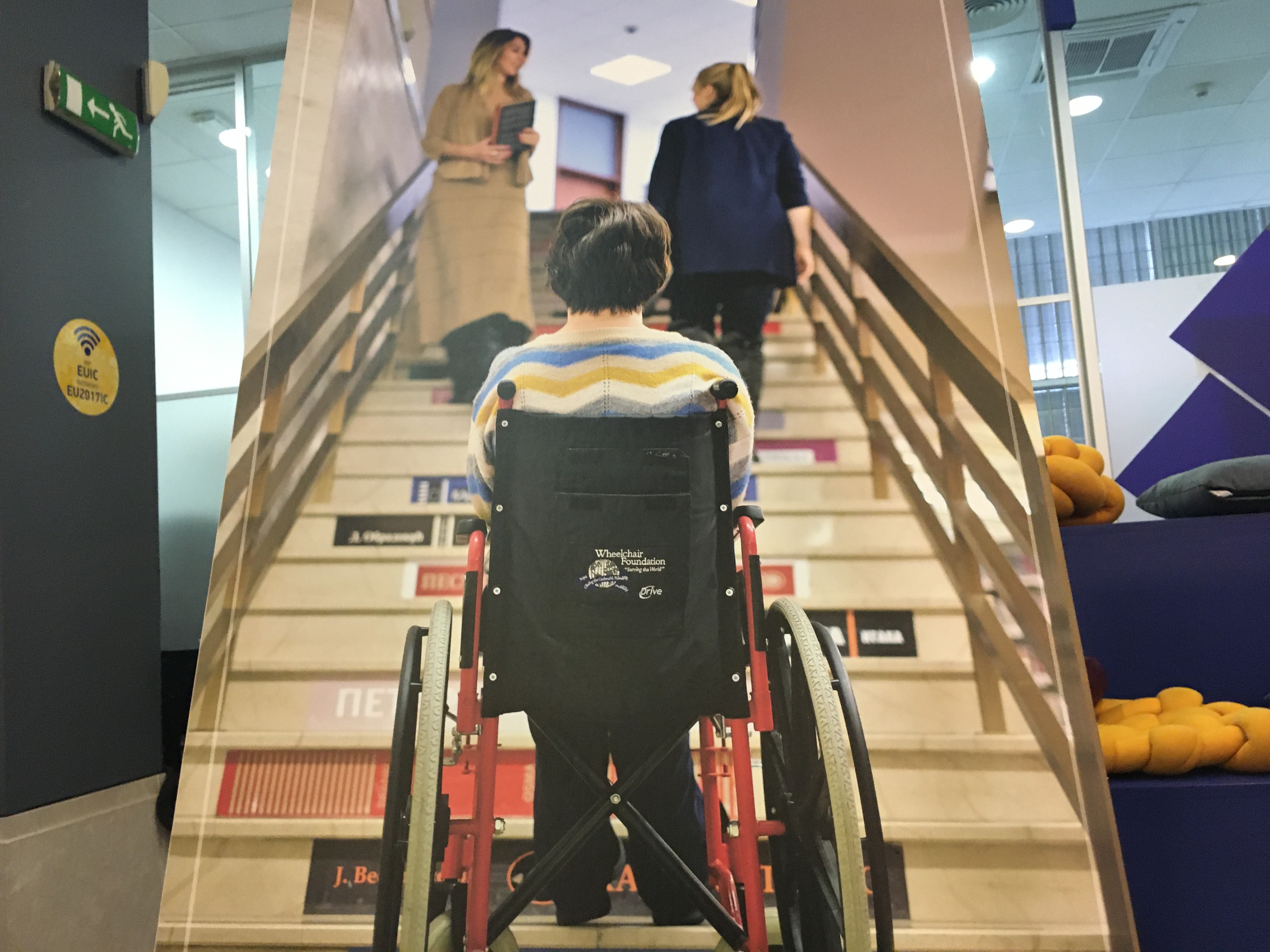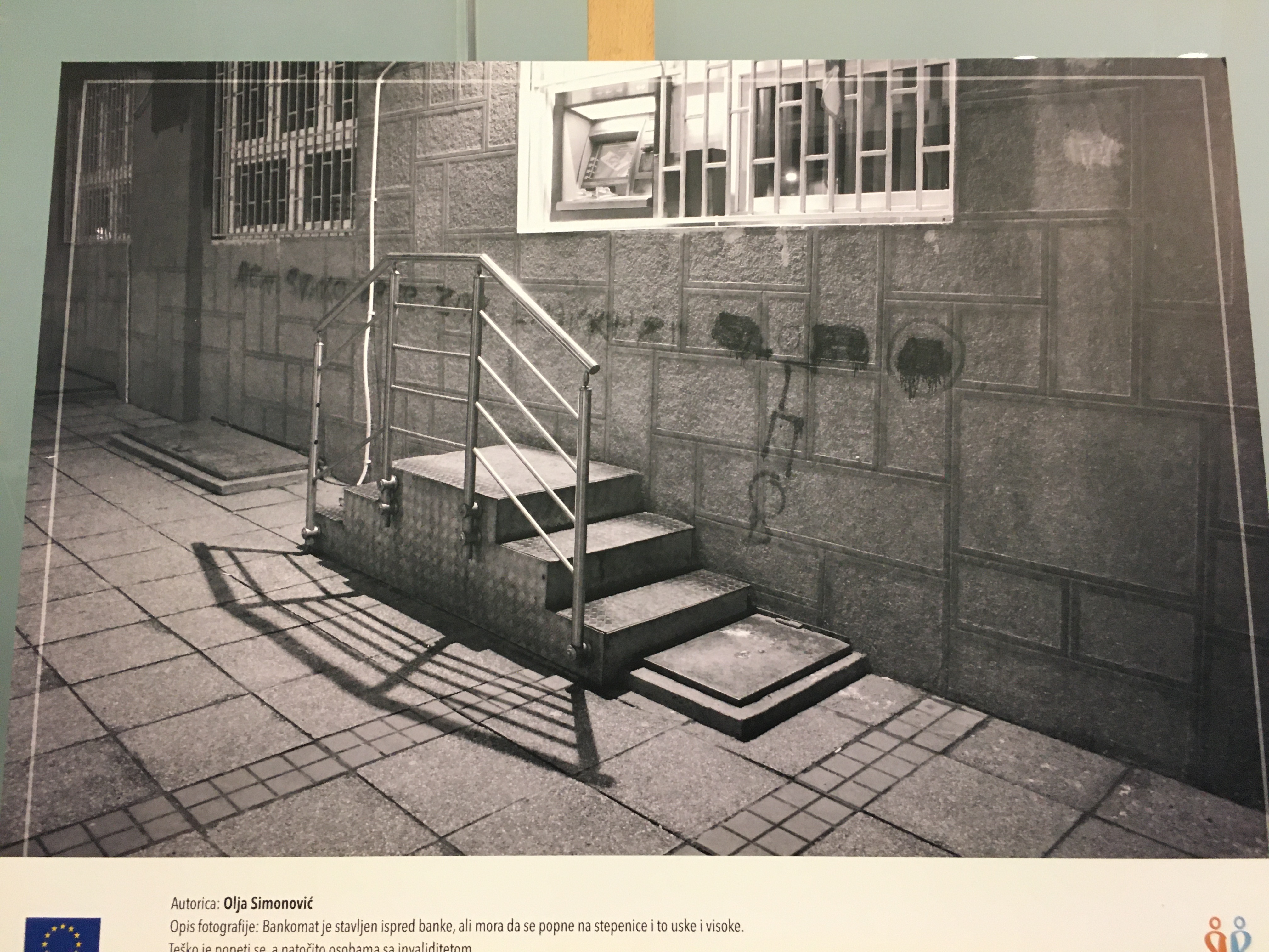 Fotografija autorice Memić opisuje samostalan odlazak osobe s invaliditetom u dom zdravlja u Tuzli gdje ne postoji ulaz prilagođen osobama s invaliditetom.