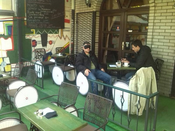 “Riječ je o performansu za kojeg smo mi inspiraciju pronašli u jednoj sličnoj akciji u Španiji, ako se ne varam. Radi se o tome da na obične stolice u kafićima u Banjaluci stavimo točkove koji simboliziraju invalidska kolica, i pored točkova ponudimo povez za oči, dakle najobičniju masku za spavanje, što omogućuje laše razumijevanje toga kako osobe s oštećenjem vida funkcionišu. Ono što je krajnji cilj performansa kao takvog, jeste da naše sugrađane navedemo na razmišljanje, o tome kako je sjediti sa kolicima na javnom mjestu, šta to podrazumijeva na nekom svakodnevnom nivou, zatim kako je ne vidjeti kafu koju pijete, sagovornika s kojim sjedite... Pored toga, u nekoj široj perspektivi, u fokusu su arhitektonske barijere, dakle prepreke da osobe s invaliditetom uživaju u ovakvim vrlo jednostavnim stvarima. Zašto? Zato što većina kafića u Banjaluci, kao i bilo gdje drugo u Bosni i Hercegovini, nije prilagođena osobama s invaliditetom. Pri tome ne mislim samo na prilagođavanje u smislu rampi, ili nekog prilaza kafiću i bašti kafića, već i o toaletima u kafićima“, objašnjava Ana Kotur, jedna od organizatorica projekta.