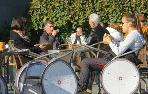 Riječ je o jedinstvenom performansu kojeg je inicirao Helsinški parlament građana Banja Luka u okviru projekta IN (Implementacija UN Konvencije o pravima osoba s invaliditetom u Bosni i Hercegovini). U nekoliko banjalučkih kafića, stolice u baštama na nekoliko sati dobile su novi dizajn – točkove koji su simbolizirali invalidska kolica, a svi zainteresovani mogli su biti dio performansa i uzeti učešće u „kafi bez predrasuda“. Želja organizatora akcije je nastaviti i u budućnosti s ovakvim aktivnostima, jer su već tokom prve sesije naišli na brojne pozitivne komentare.