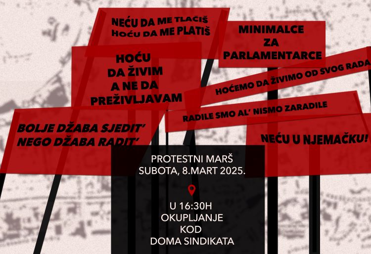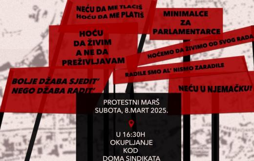 “Povodom Međunarodnog dana žena marširamo za dostojanstven rad, sigurnost na radnom mjestu i jednake plate. Za radne uvjete vrijedne življenja. Marširamo protiv neplaćenog i potplaćenog rada u BiH. Marširamo za bolji život za sve nas”, piše u saopštenju organizatora.