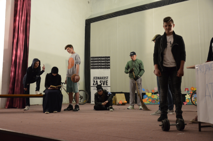 Predstava koju su pred drugovima, roditeljima i ostalim građanima zajedno izveli gradačački osnovnoškolci i srednjoškolci otvorila je mnoga pitanja o prisutnosti diskriminacije među učenicima, u školskim klupama i van škole. Učenici su pokušali pokazati kako izgleda kada mladi diskriminišu djevojčicu koja ima jedinstven stil oblačenja, dječaka koji je gojazan ili učenicu koja nosi hidžab. Postavljajući različite scene verbalnog vrijeđanja, prijetnji i nasilja nad onima koji se po nekoj svojoj osobini izdvajaju od većine, učenici su željeli gledaoce podstaći na razmišljanje o sveprisutnosti diskriminacije u bh. društvu.