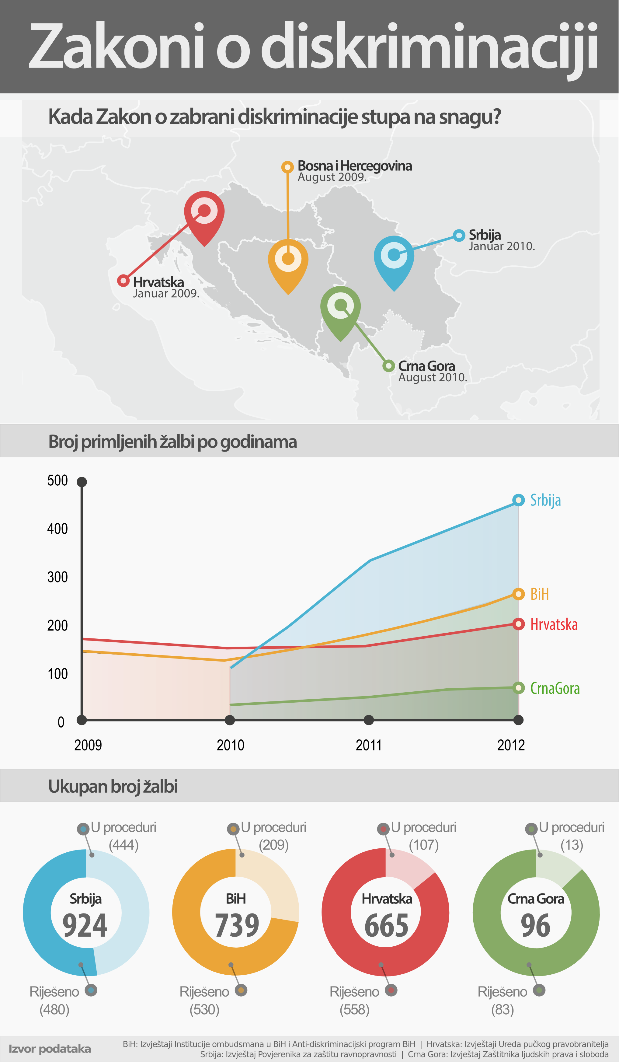 Povodom Međunarodnog dana ljudskih prava predstavljamo vam pregled implementacije Zakona o zabrani diskriminacije u regiji. Podaci su prikupljeni na osnovu dostupnih izvještaja Ombudsmana za zaštitu ljudskih prava u svakoj od zemalja.