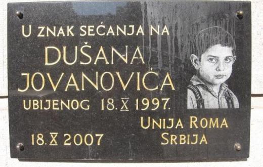 Najpoznatiji zločin iz mržnje, kojim je u Srbiji ova sintagma dobila na značaju, dogodio se 18. oktobra 1997, kada je trinaestogodišnji dečak romske nacionalnosti Dušan Jovanović na smrt je pretučen u strogom centru Beograda, u Beogradskoj ulici kod broja 33, nedaleko od kuće u kojoj je živeo sa porodicom.